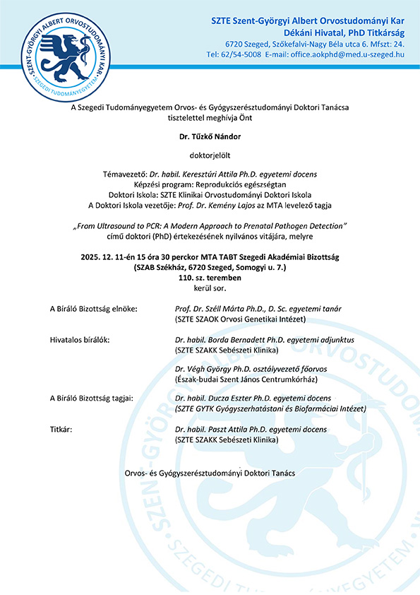 Dr. Tűzkő Nándor PhD védése – From Ultrasound to PCR: A Modern Approach to Prenatal Pathogen Detection címmel